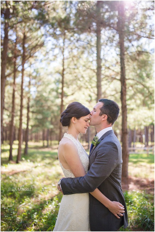 The ceremony took place in a clearing surrounded by pine trees just as the sun set. Morgan’s dad officiated and close friends read. It was fantastic.