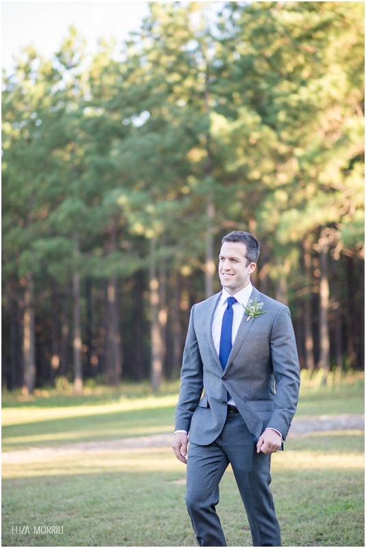 Margaret + Morgan met in between rows of pine trees for their first look, and it was perfect. We then wandered around the property, stopping in front of the “Bee House”, an old antebellum home that Margaret’s parents recently moved to the farm and are restoring. It’s amazing. We headed down to the lake, too, taking in the perfect weather.